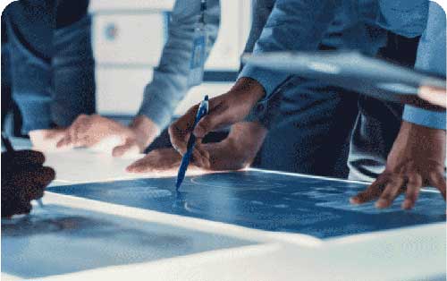 نعمل معكم لتصميم الخطة والمهارات والمواد التدريبية اللازمة لتحقيقها. والتعاون مع فرقكم في هذه المرحلة ضروري لهم لكي يشارك أفرادكم في المسؤولية عن الخطة الناتجة ويلتزموا بها. وعندما نعرف بدقّة الموارد والزمن والخبرة اللازمة، نعدّ خريطة طريق مفصّلة نتبعها معاً طوال مدة تحوّلكم المؤسّسي.